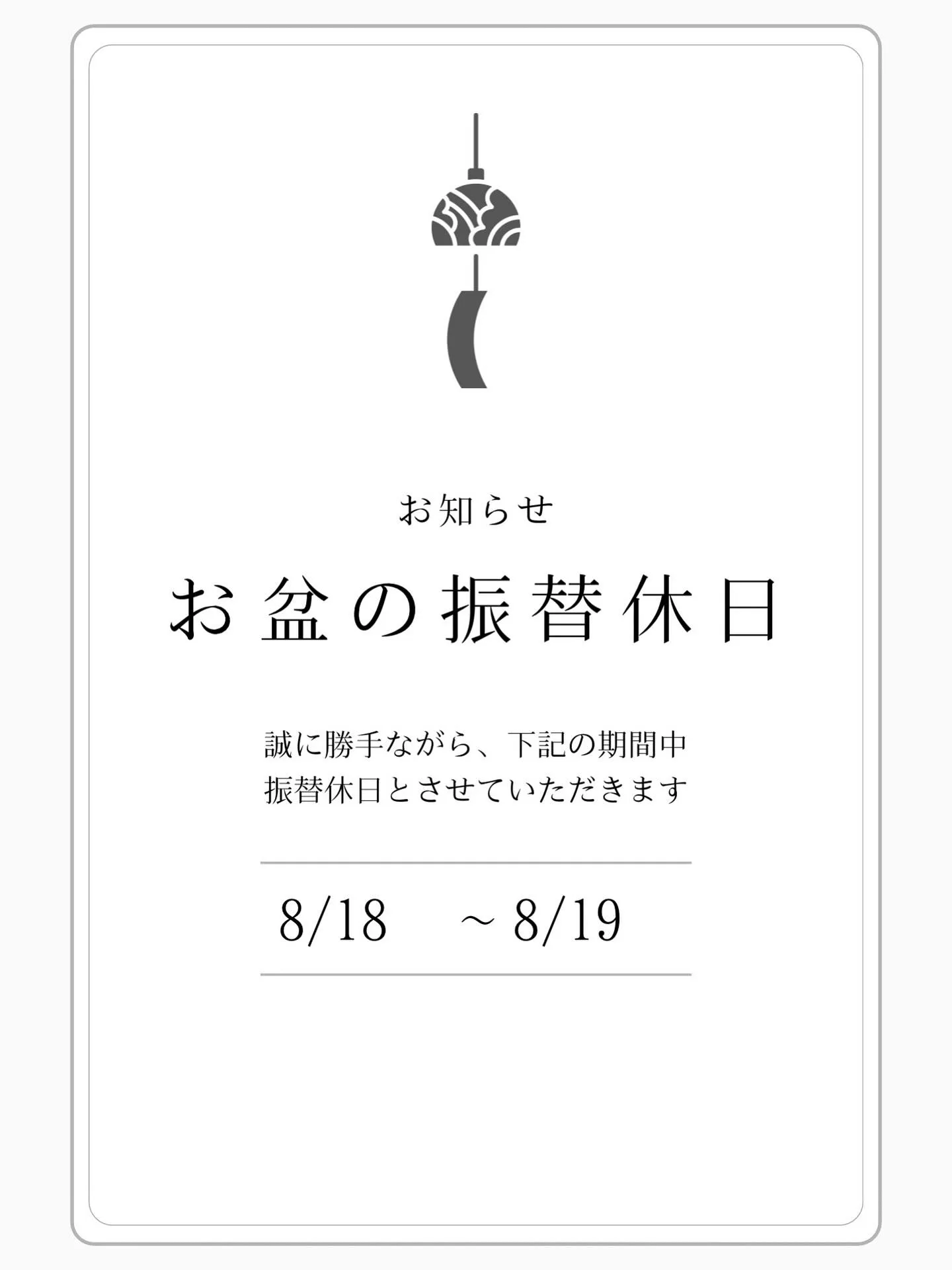 お盆の振替休日頂きます 2025/08/12 お盆の振替休日頂きます 沖縄料理としゃぶしゃぶ ハレノ日もお休みです 雷電は17日のみ休みの予定で 18.196通常通り営業しております よろしくお願いします!